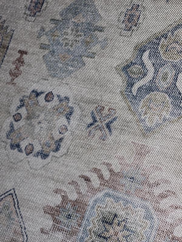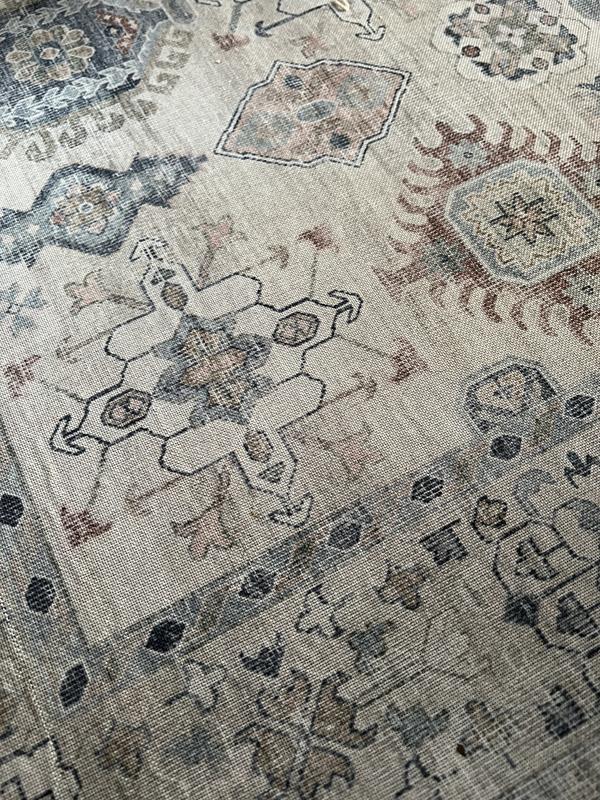 This low pile rug, which suits the style well, has a slightly antique/worn style effect. This gives it a nice textured feel that would go well with other vintage and historic décor pieces. Size is perfect for small/medium spaces.