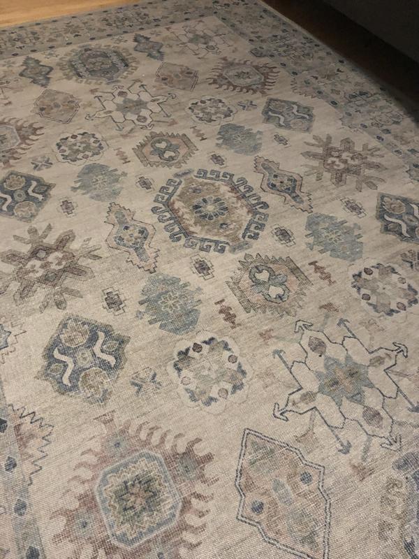 We don't wear shoes at home and for us is very important to have rugs on the floor to keep our feet warm. This rug has a padding for the comfort and warmth. I use it in the living room and my son likes to play on it. The design of the rug reminds me of something vintage with a very subtle color patterns which makes it very versatile for any room and any style interior.