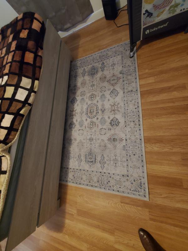 I’m really enjoying my beautiful area rug. The colors blend in very well with my bedroom. Very well made. Comfortable on my feet when walking on. Fits well in any sized room. Easy to take out and wash.