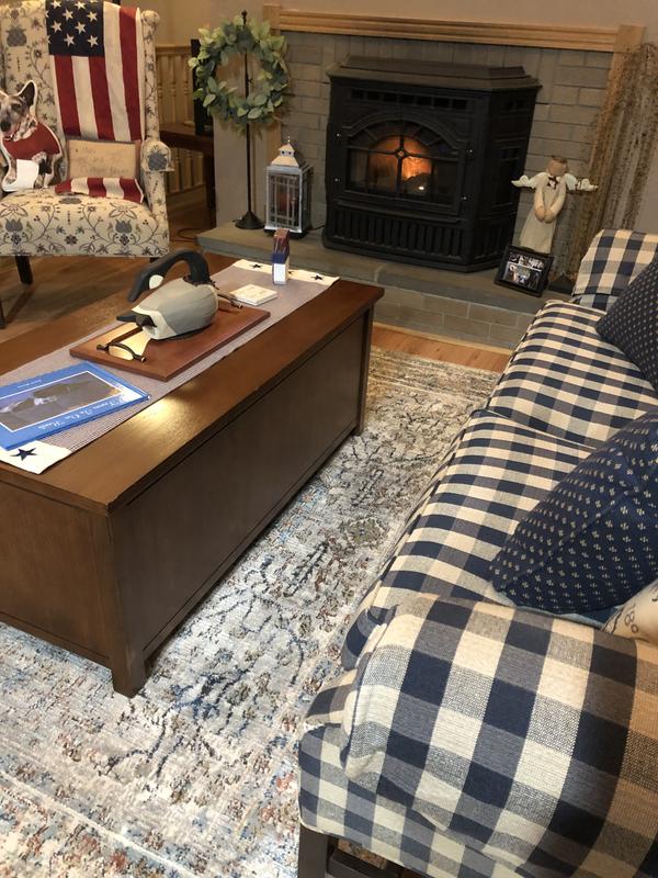 Lovely rug from a trusted brand! The style/pattern is subject to personal preference, but it's well made, soft, and the colors are vivid. In my opinion, the greys and taupes are an easy color scheme for a lot of today's interior styling, and the blues and rusts make it fairly versatile to coordinate.