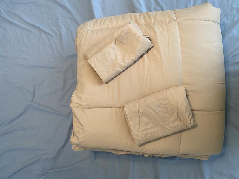 I think the weight of the comforter is great, it would be perfect for me year round living in Florida. I wish the material was not so wrinkled. I do not like the shame that came with it, they are really thin and don’t seem like the same material as the comforter so I probably won’t use them.
