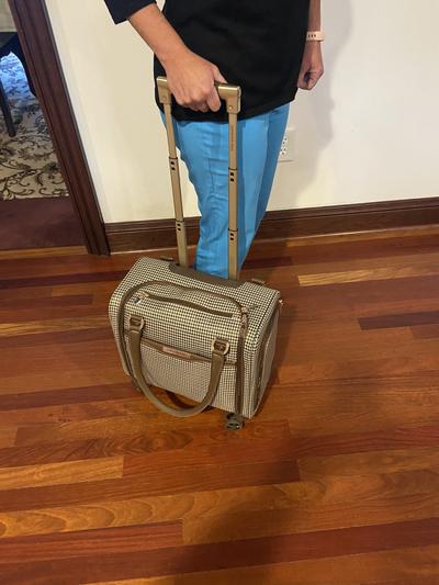 Never received this piece of luggage. Tried to locate. It was suppose to had gone to UPS store. which is really good about receiving my packages or my PO box. Neither one has been able to locate this bag. I keep talking to customer service to let them know it has not been received. I keep getti g the bill. I have a couple other pieces from a othe dept store. I like tbe color and the storage. Maybe O wpuld like this item too. I would recommend, based on the pieces I already have. I gave it a 1 because I like the picture and tried to order it.