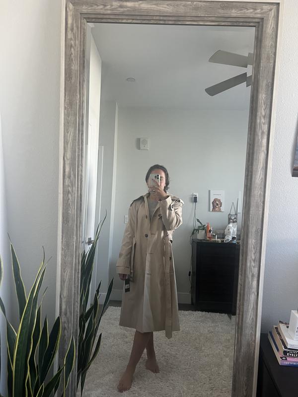 I love this trenchcoat. I had tried double breasted styles and because I like to wear it open, they seemed to engulf me. The single breasted is much more streamline looking and more flattering. I'm 5 foot five, 115 pounds and ordered XS. Fit is good. Classic style that will never go out of style.
