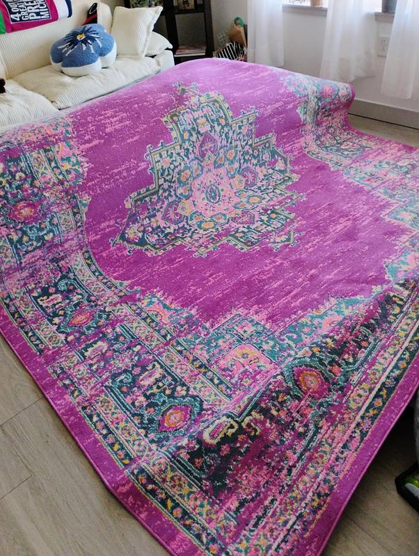 I absolutely love this rug! The colors are vibrant and even more beautiful in person — the deep teal with pink details brightens the whole room. The texture is soft, the edges are well-finished, and it lays flat right away. It feels high-quality and adds so much warmth and personality to my space. I’m very happy with this purchase!