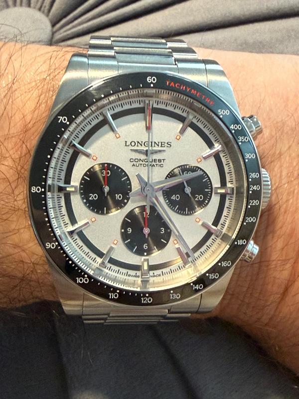 The watch looks great however the bracelet of this brand new watch is showing wear and tear. For the price of the watch, I would expect perfection. All the luxury watches I’ve purchased from Macy’s still have the original plastic cover protection on the face of the watch even on the bracelet but this one does not. Even the box that came with it is damaged. I would not expect this from Longines watches. As much as I want this, I returned the watch.