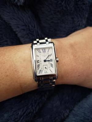 I purchased the Longines Women's Swiss Dolcevita Stainless Steel Bracelet Watch as a gift for my wife to celebrate her completing probation at her new job, and it exceeded all expectations. The watch is a perfect blend of elegance and sophistication, with its sleek design and high-quality craftsmanship. The stainless steel bracelet adds a refined touch, while the Swiss movement ensures precision—making it not just a beautiful accessory but also a reliable timepiece. It fits comfortably on the wrist, and the Dolcevita collection’s signature rectangular face gives it a unique, timeless charm. My wife absolutely loves it, and it was the perfect way to commemorate her achievement. If you're looking for a stylish and meaningful gift, this watch is a fantastic choice!