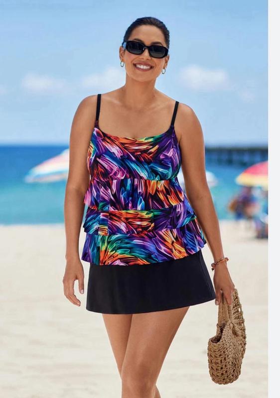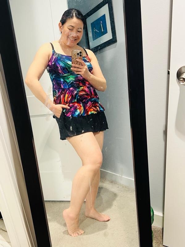 Longitude Women's Leaf Encounter Faux Ruffle Skirtini Long Torso Swimsuit