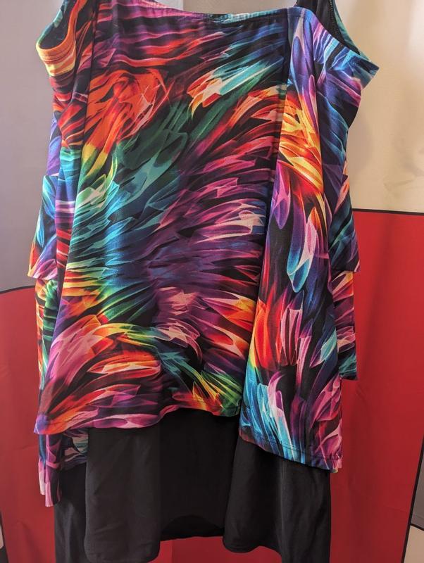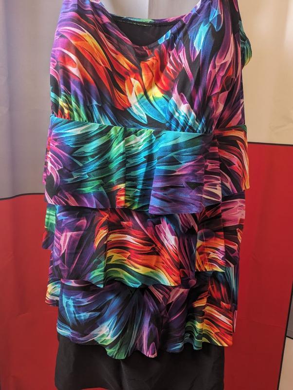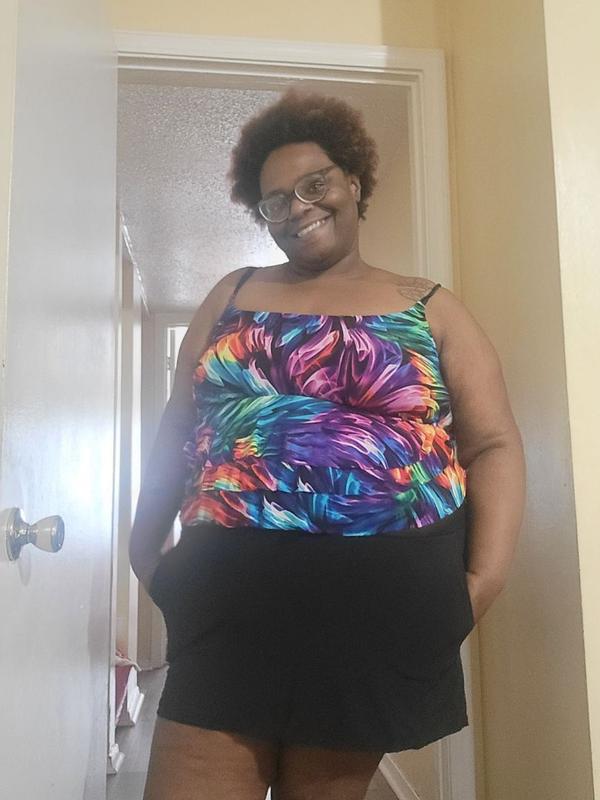 Cute. I bought this for my 96 y/o mom but she felt it made her look heavier. It did not! super cute. We exchanged for non tiered suite