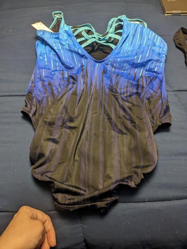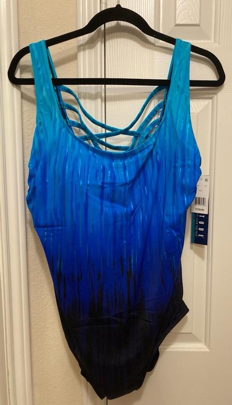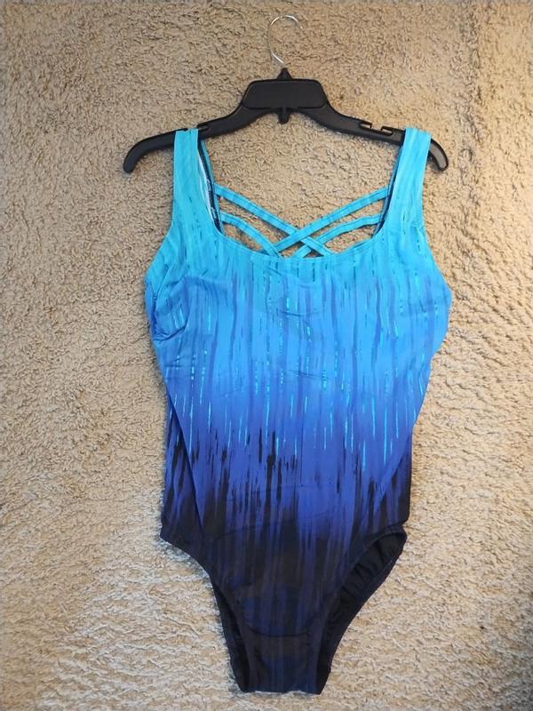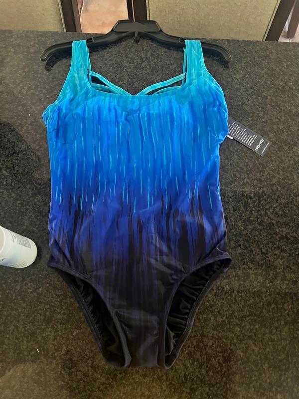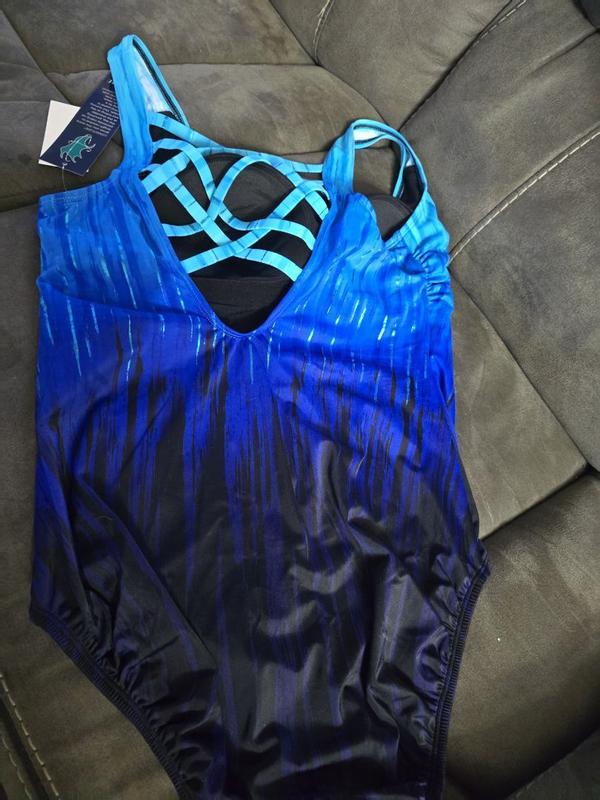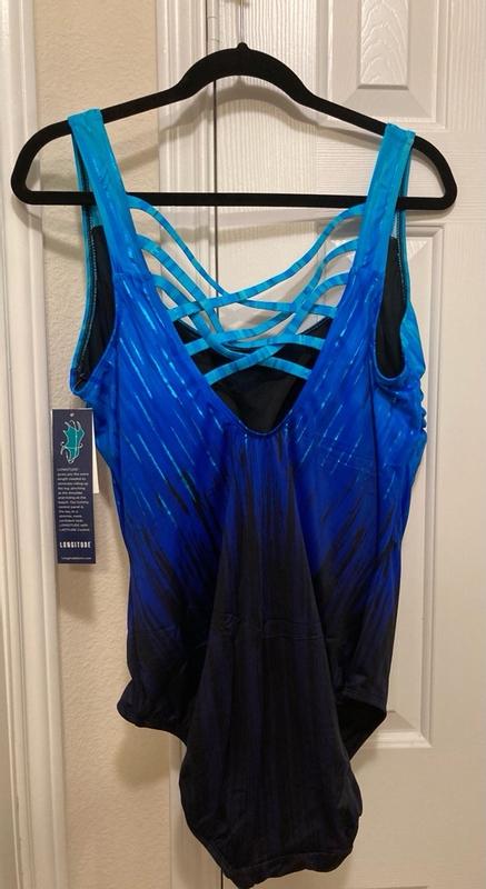 Another fantastic find by Longitude. The colors are delicious and the gold pattern really draws visual attention to the top half of the suit. The stripes on the lower half give the illusion of a flatter abdomen. And the crisscross back is very stylish. Quality material that supports you in all the right places. Can't praise the design team at Longitude enough. Thank you Macy's for carrying this brand!