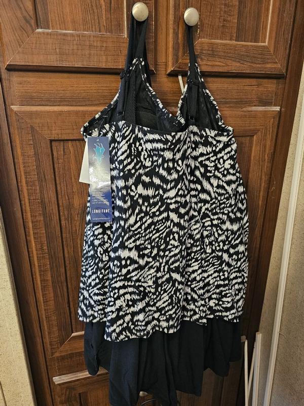 Super Sleek Ruffle Faux Shortini from Longitude is comfortable, and perfect for older or shy women. Good thing is that it has ruffle which looks nice and stylish and hides your figure. It has pockets in the shots. The material and quality is good. Shorts are loose and comfortable but climbs up when you come out of water. It comes with padding which was not aligned and didnt fit properly for me. Also the M size was little loose for me and the straps hurt.