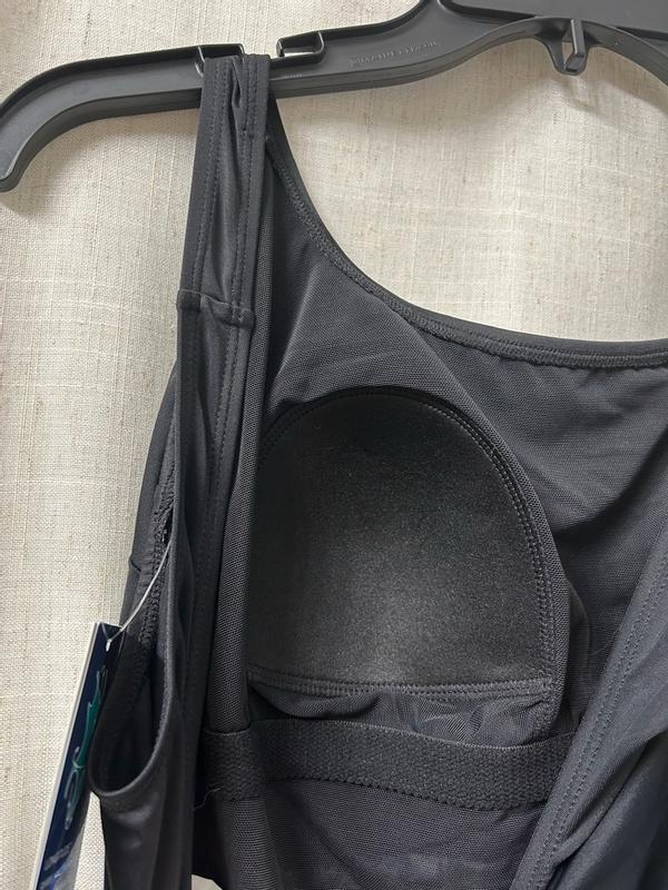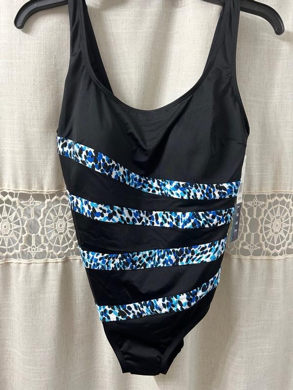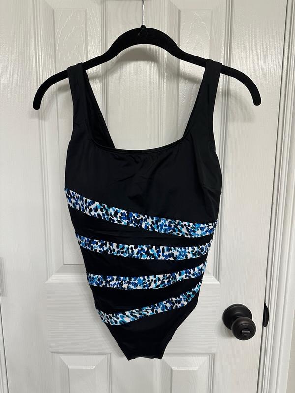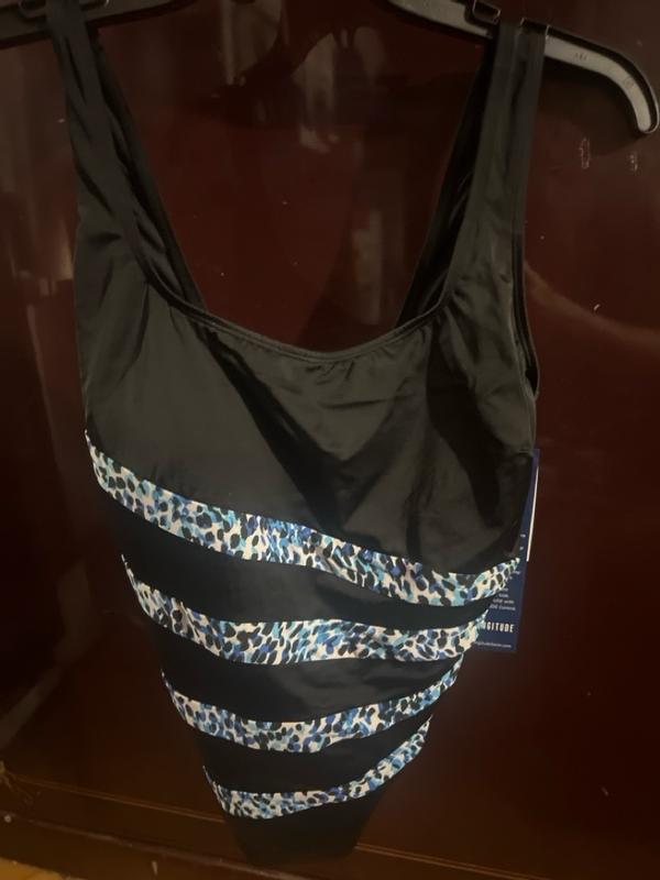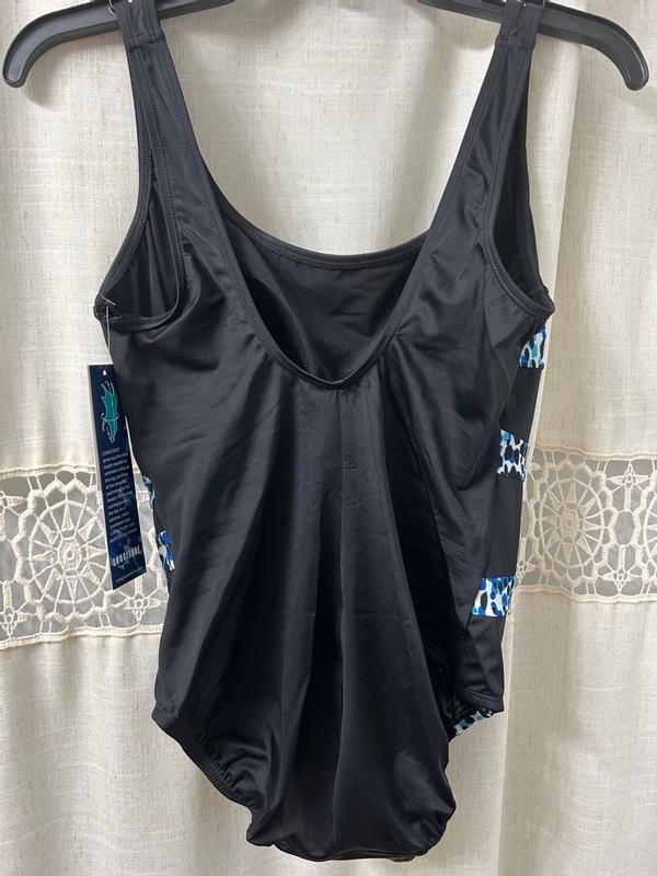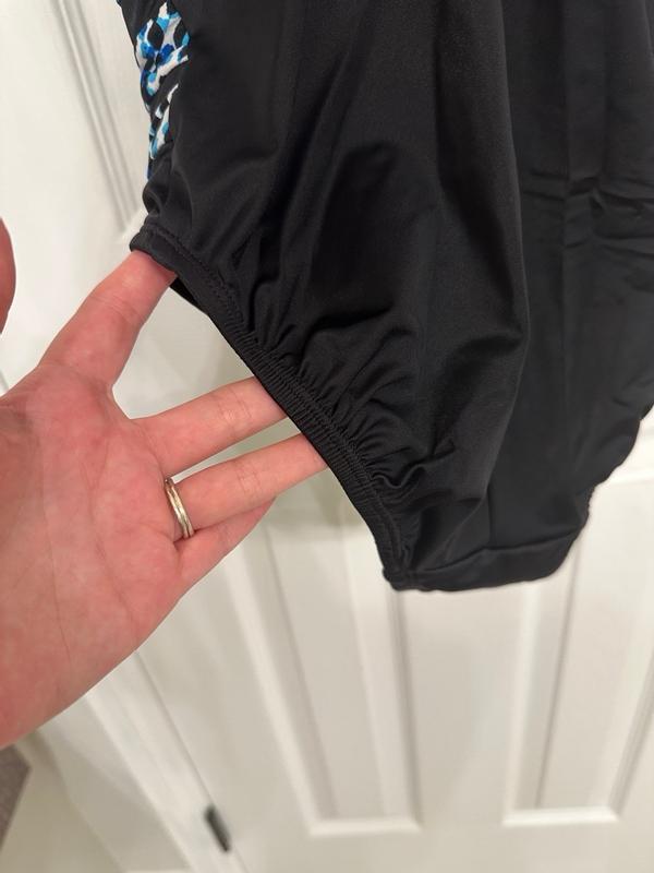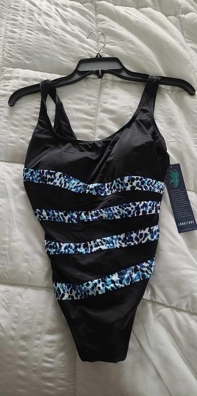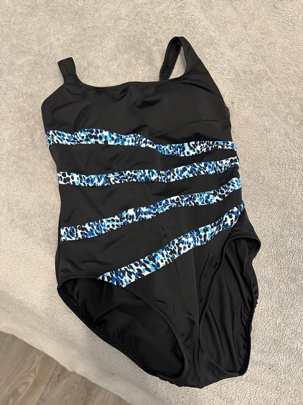 This suit, so far, is great! The design is eye catching- right where you want it to be. It’s comfortable through an hour of water aerobics 5 days a week.