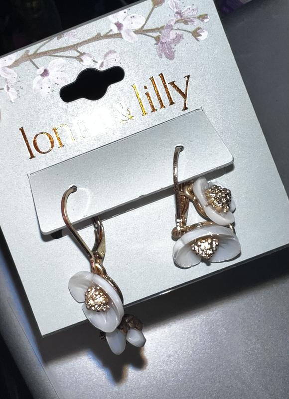 lonn & lilly Gold-Tone & Imitation Mother-of-Pearl Flower Linear Drop Earrings