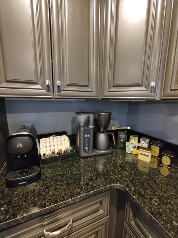 The Barista system is the perfect size for our small coffee bar, but beautiful design and functionality are not compromised. This small machine offers all kinds of options for espresso and regular coffee. It also works well for tea, dispensing very nice “hot” water! We love this beauty and wouldn’t trade it for any of the high price systems! (Ps: the coffee is fabulous as well).