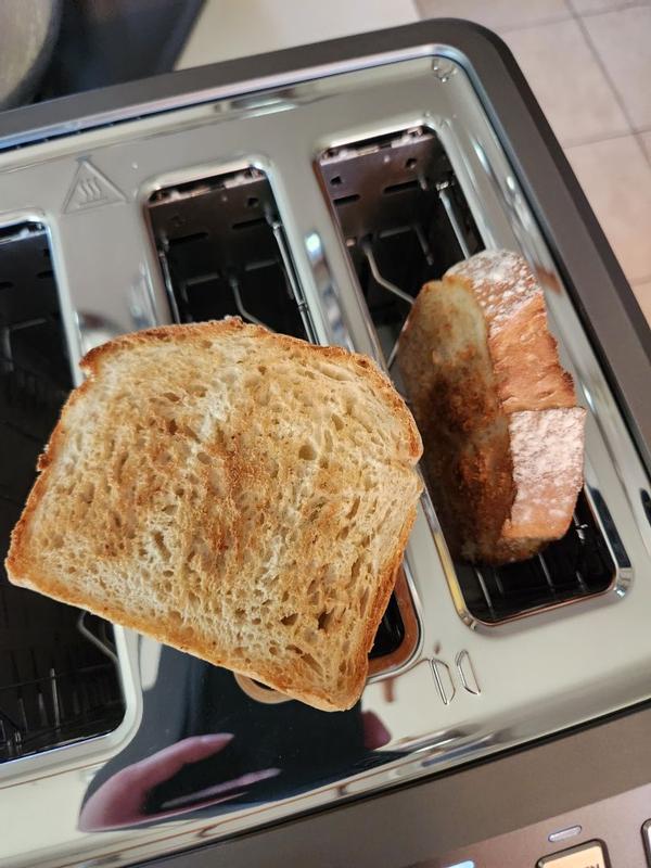 I’m really happy with this toaster. It looks so sleek and stylish on the counter and toasts everything perfectly- the frozen and bagel functions I’m getting a lot of use of and they work perfectly. The slots are wide which is perfect for my sour dough, I love how evenly it browns and how easy it is to wipe clean, plus the pull-out tray makes crumbs a non-issue. Honestly, it feels like a little luxury every morning. It’s heavyweight and seems like such good quality. I think if you’re in the market for a luxury toaster, this is a fantastic choice!