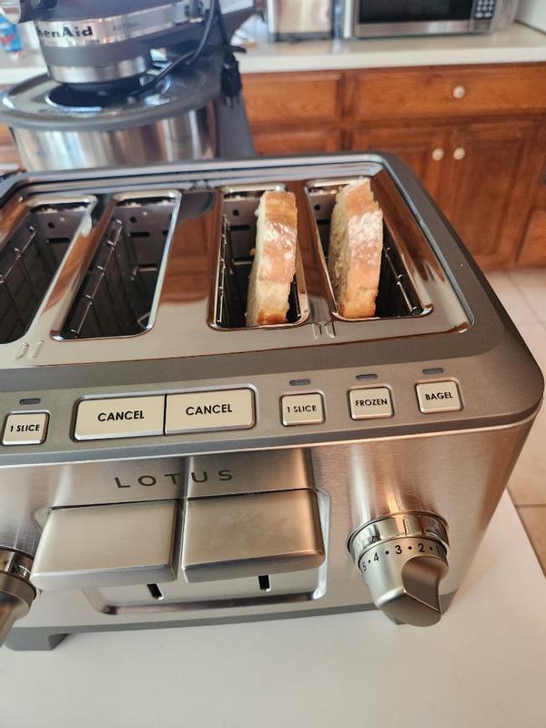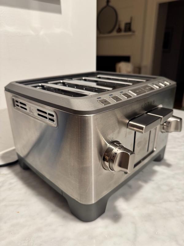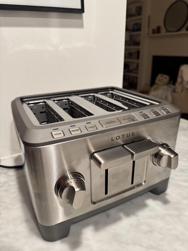 The Lotus Professional Series Four-Slice Precision Toaster looks really sleek on our countertop and definitely has that modern, polished feel. It toasts quickly and the controls are easy to use, which makes mornings
