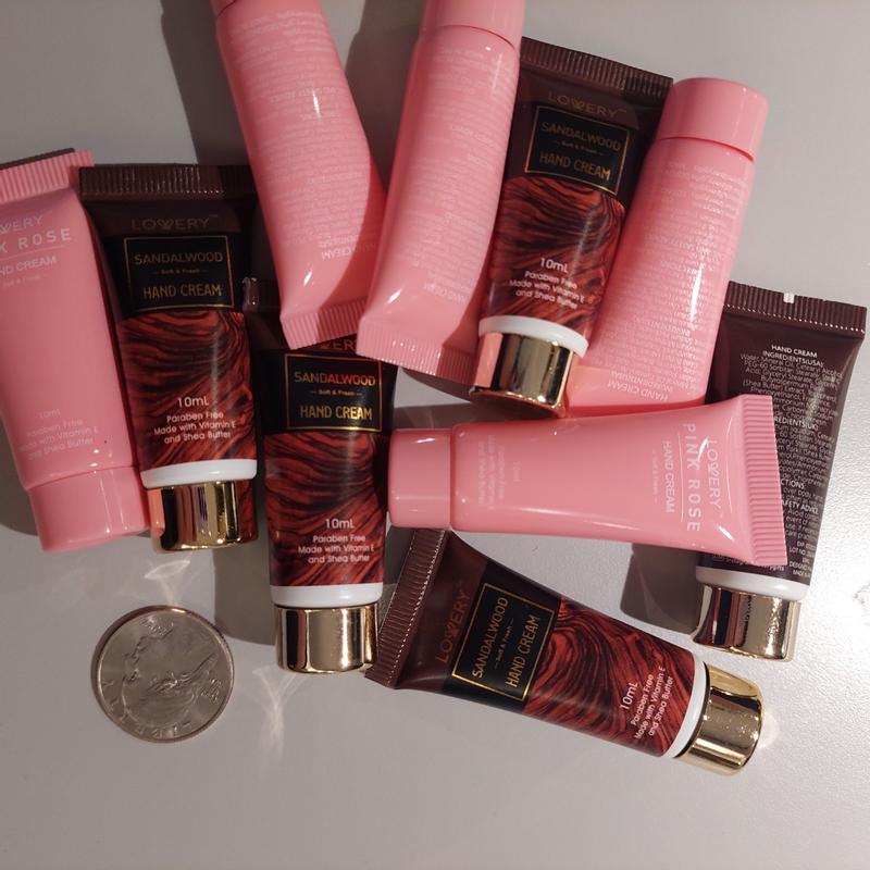 I didn't pay attention to the size when I ordered (my fault), so was surprised at how tiny these were. They're more sample-sized than purse-sized. See photo - quarter included for size comparison. They're cute as part of a stocking stuffer or travel kit, but not much else. Also, the rose scent is quite strong.