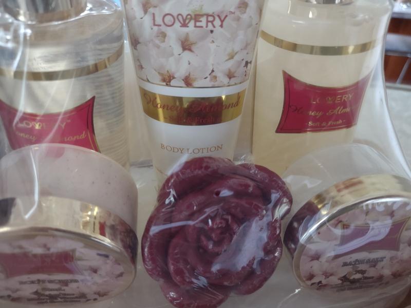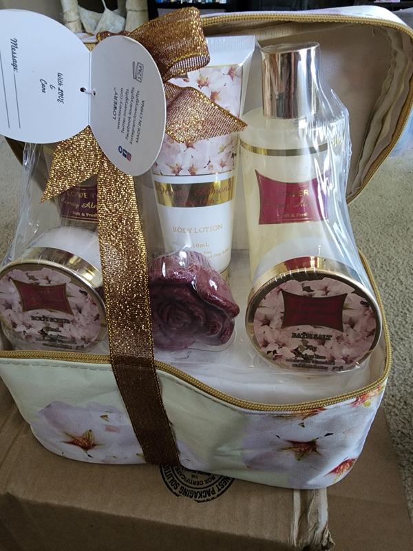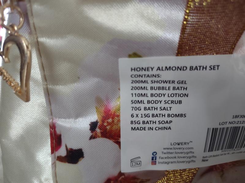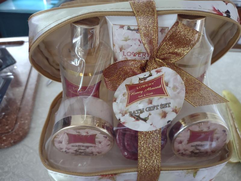 First, it took almost two weeks to receive the order and when it arrived I was very disappointed in the product. The set includes soap, shower gel, lotion, bath bombs, and bath salt. I used them all and still couldn’t smell the honey almond scent. So glad I didn’t pay full price for it.