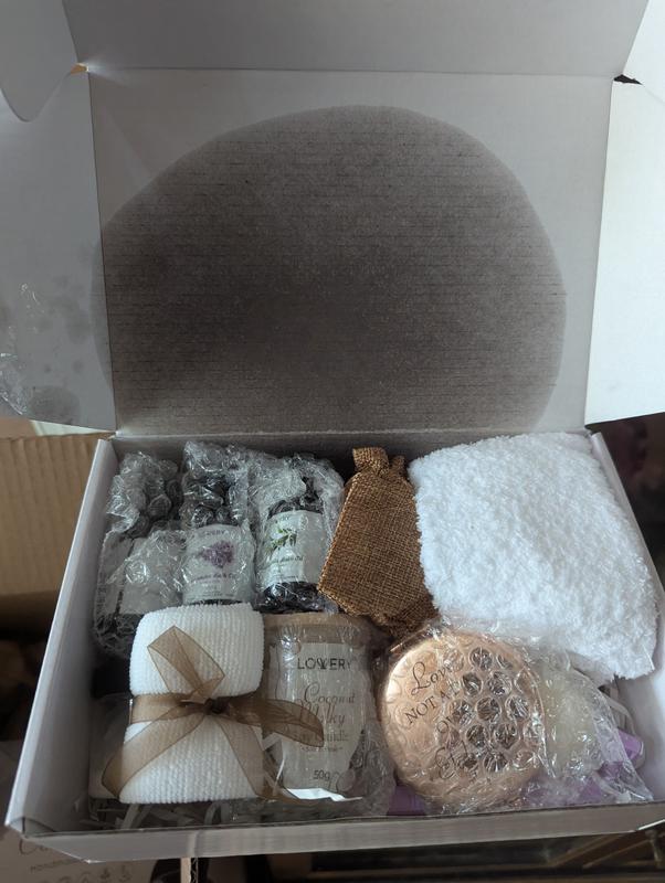 This Lovery French Coconut Aromatherapy Gift box was more than I would have ever expected in this type of gift set! I was so impressed I didn't want to share any of it. My mother told me to share this: The quality of all of the products from the little mirror to the wonderful smelling essential oils is superb! The candle and the lavendar are wonderful to use when lathering up with the soap/loofa combo and bathbomb. I used the nail scubber after soaking and the micro fiber washcloth on my face. Afterwards, I smoothed the skin toning cream every where and then finished up with a foot massage with the sturdy and well made rolling massager while wearing the comfy socks was heaven! My input: This kit is simply amazing! Everything you could possible need and more to give as a gift or to spoil yourself.
