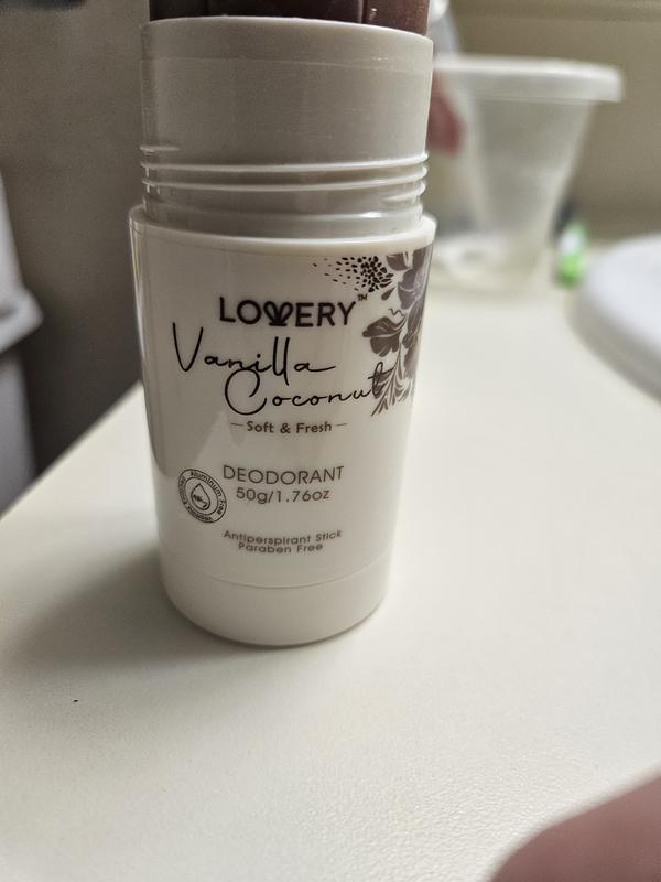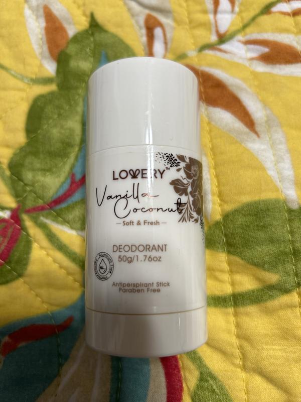 What a great product. Smells so nice and fresh when I put on. There is no white residue on my clothing and even keeps me odor free when I work out. Vanilla is my favorite fragrance, and that mixed with coconut and lavender smells so good.