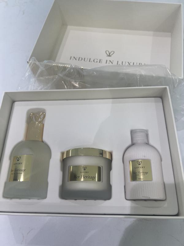 I was genuinely impressed by the Lovery Her Heritage set from the moment I opened the box. The packaging alone screams elegance—crisp white with gold accents and the phrase “Indulge in Luxury” setting the tone. The set includes: • A beautifully frosted Eau de Parfum bottle (100ml) • A rich body cream in a glass jar with gold detailing • A coordinating body lotion (100ml) in a sleek ribbed bottle Each item feels high-end, from the textures to the scent. The fragrance is warm, soft, and feminine—neither overpowering nor too light, making it perfect for daily wear. The body cream is thick without being greasy, and the lotion absorbs well, leaving skin hydrated with a subtle scent trail. This makes an amazing gift, but it’s also the kind of set you’ll want to keep for yourself. If you’re looking to treat yourself or someone special, Her Heritage definitely lives up to its name—elegant, timeless, and indulgent. ⭐️⭐️⭐️⭐️⭐️