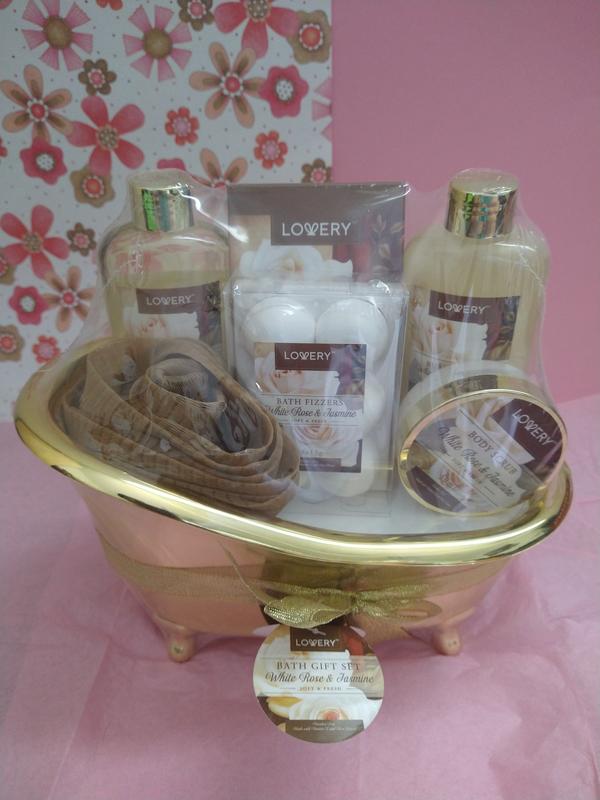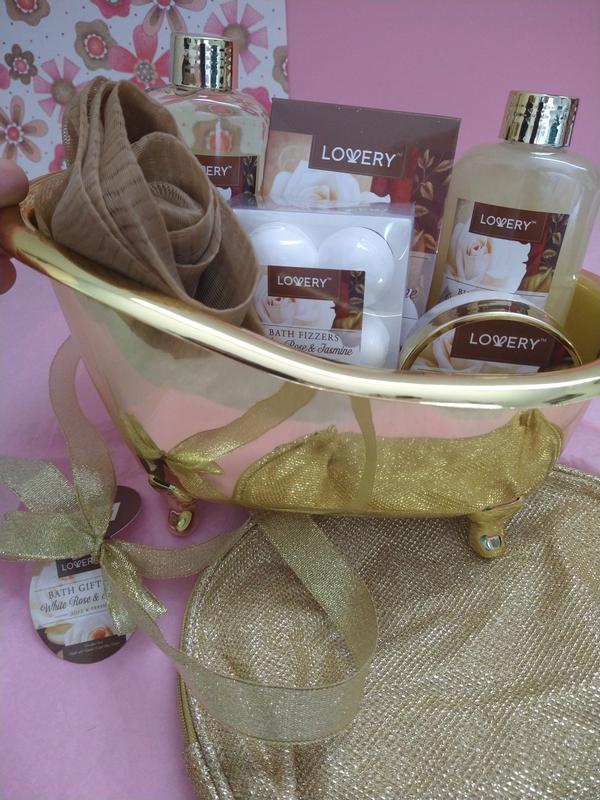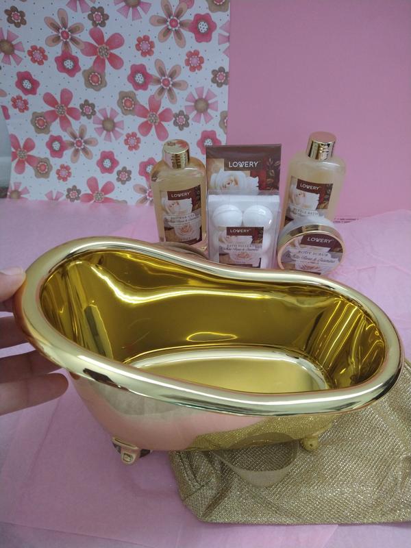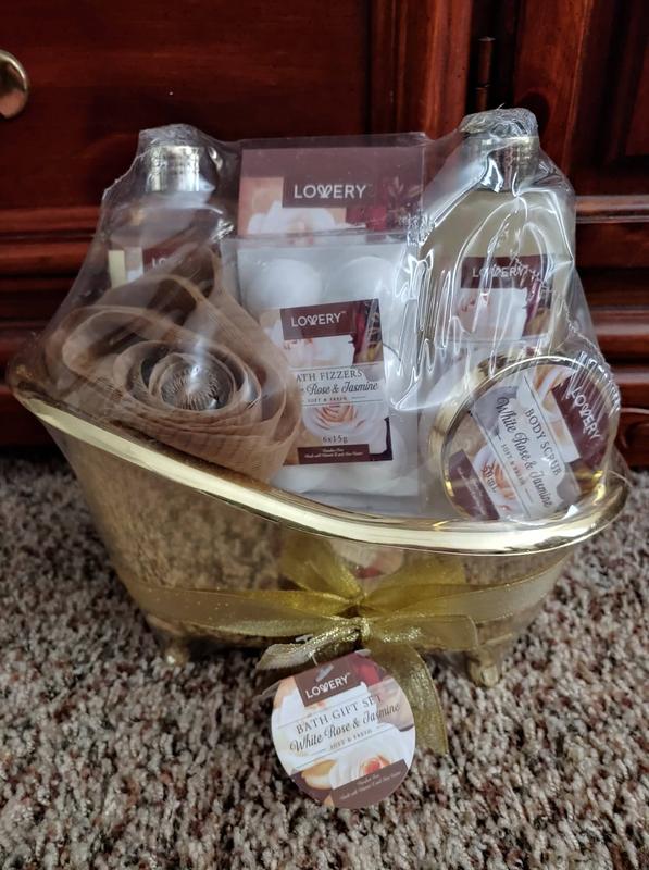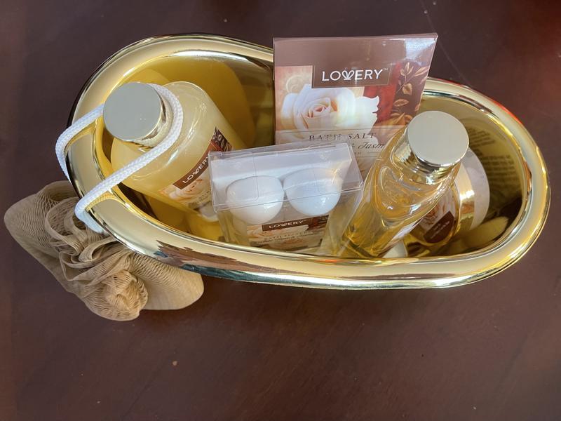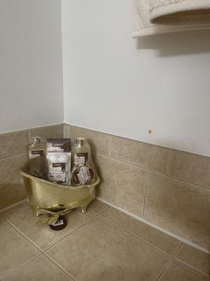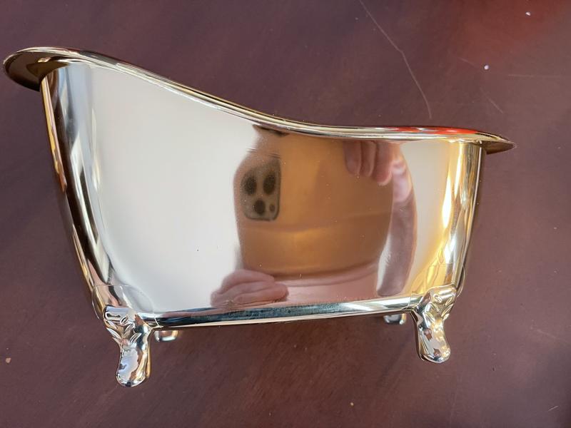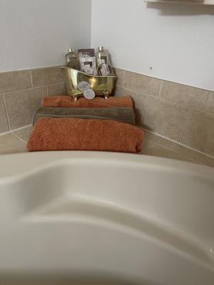 One of the legs on the tub was broke. It’s cue. I put it on the back of my toilet with wash cloths. It has a nice smell but doesn’t last long