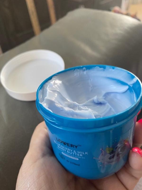 This body butter hydrates really well. My skin has been a bit dry in recent weeks and this body cream really helped to restore some moisture. The blueberry scent is a bit light. I would have liked a stronger scent, but otherwise this is a nice body butter.