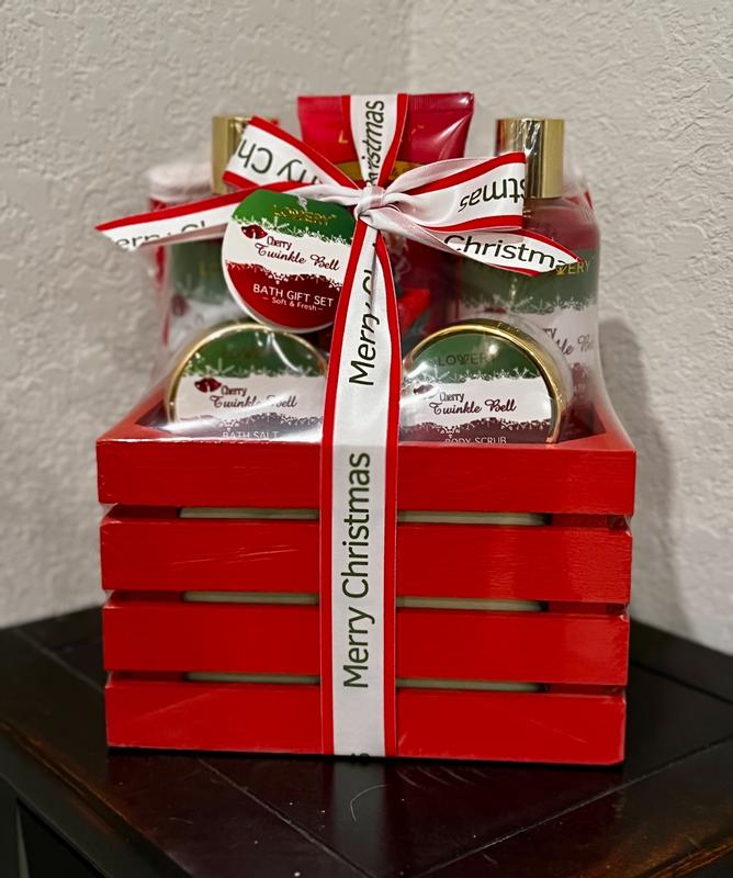 Cherry Twinkle Bell Christmas Gift Set, Bath and Body Care Package, 8 Piece