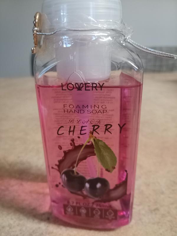 I normally buy a similar soap but decided to try Lovery's Cherry foaming hand soap. The pump dispenses an appropriate amount of soap to thoroughly clean my hands. I love that it has lavender, aloe and Shea butter as I have dry skin. This soap makes my hands feel soft. The cherry scent is perfect!