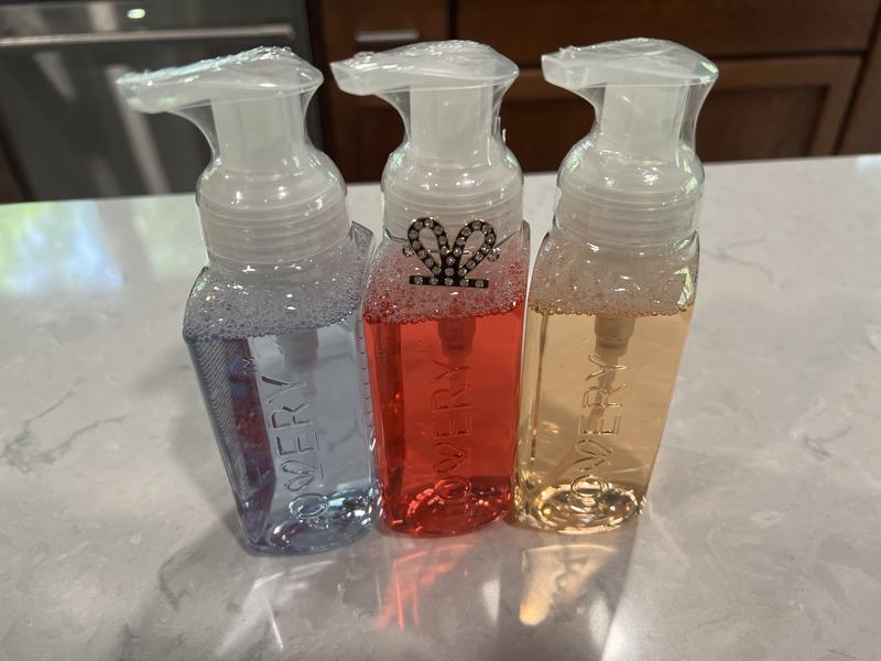 I love the smell of all 3 of these. Very nice scent, and not overpowering at all. Just a small amount creates a lot of foam and you are able to see that you get every inch of your hands covered. Washes off easily, and leaves a nice, subtle scent. It did not leave my hands feeling greasy at all. The bottles are pretty sitting on the counter.