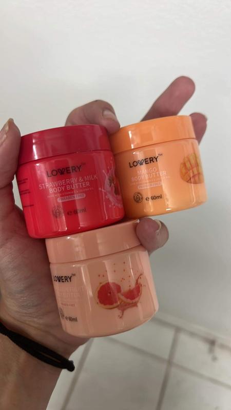 • Set includes - 60 ml pink grapefruit body butter, 60 ml strawberry milk body butter, 60 ml mango body butter