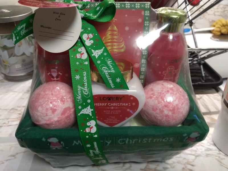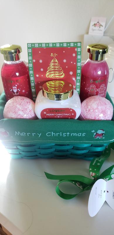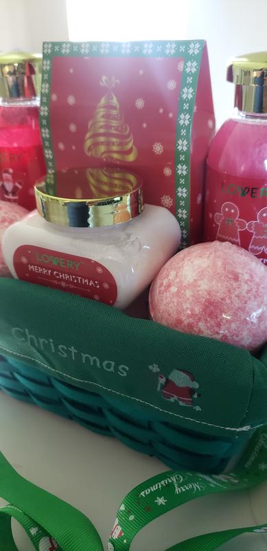 The Lovery bath and body Christmas set is very good. The set contains shower gel, bubble bath, body lotion bath salts, bath bombs and loofah. All the products smell great and the lotion is not greasy. The basket is so cute and can be reused for cute Christmas decorations. Great set!!