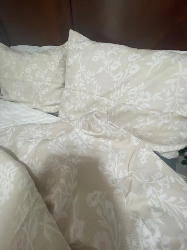 Really like the neutral color and elegant pattern of this duvet cover/shams. Blends perfectly into our decor and washed up well first time! Fit our standard queen duvet with no problems. I wish the material were a little thicker to make it feel more high end but otherwise awesome!