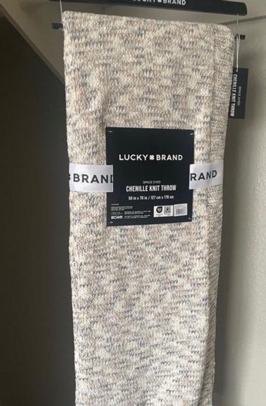 Lucky Brand Logan Chenille Knit Throw Blanket add light neutral tones to brighten up any space. This blanket is 50”x70” very soft chenille knit which my Frenchie fully approves of. This cute throw came with a hanger for storing when not in use. I love everything about this throw EXCEPT it was so LINTY when I unfolded it for the first time. I don’t know when it’ll stop dropping lint balls or if it ever will…