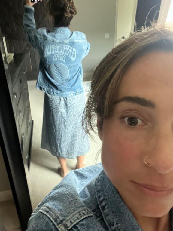 This denim jacket is the BEST! I cannot wait for the weather to cool off so I can wear it! I sized up one size so I can wear a hoodie under it.