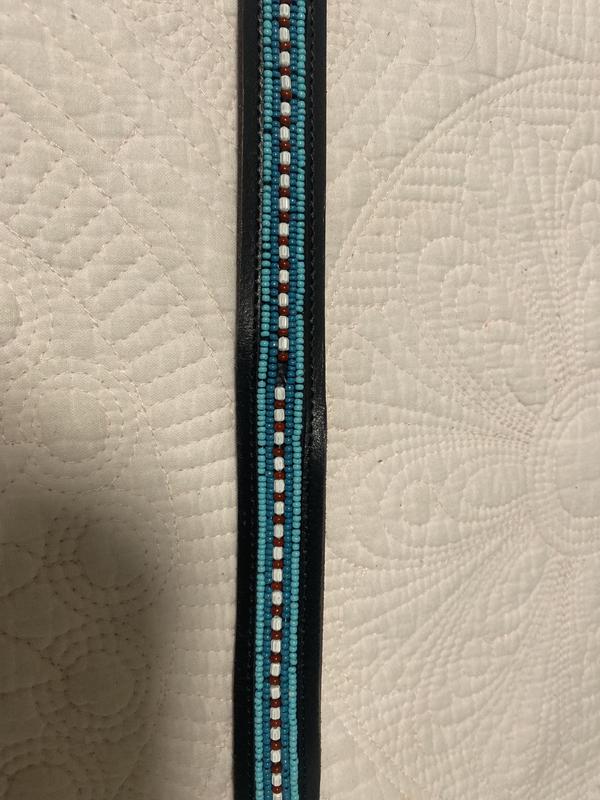 Belt Goes with EVERYTHING especially TURQOISE. Nice width for jeans and other pants. Flexible. Beads look custom made in the belt. Better than the ad for the belt. Delighted with it!