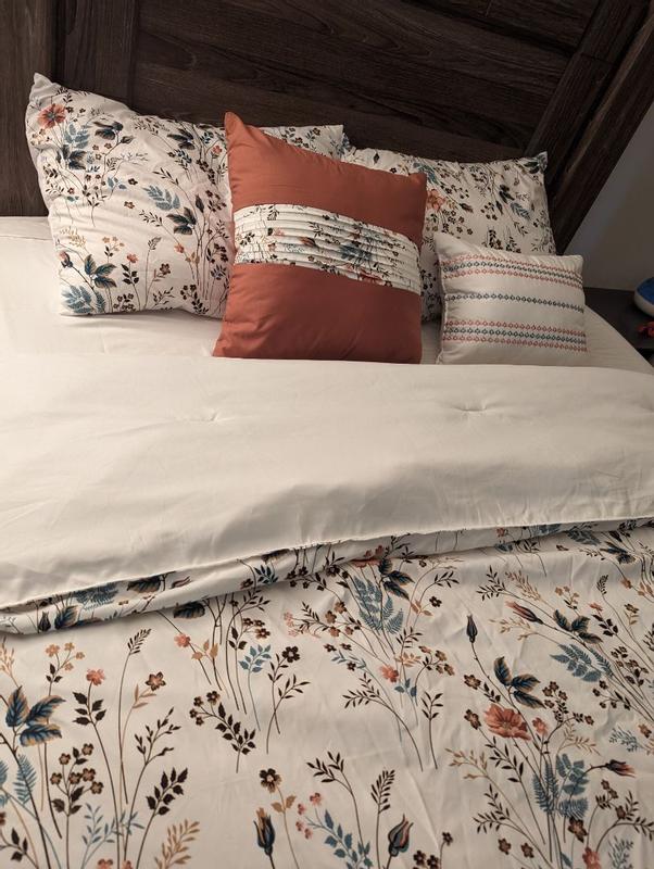 This set is so comfortable! It gives my room such a cozy and happy vibe. The sheets are very soft and cool and the extra throw pillows add an amazing accent to the bed. This is a set that will never go out of style. I haven’t washed it yet so I can’t tell how durable it will be, but I plan on dry cleaning to make it last longer.