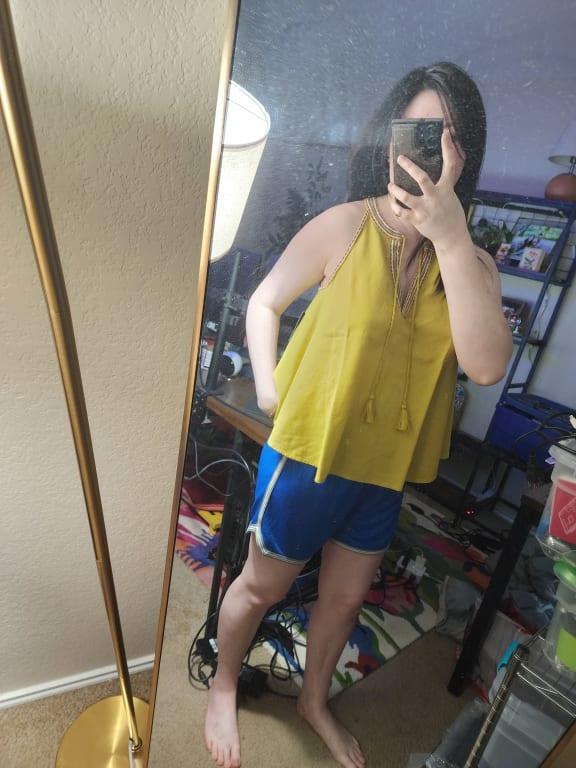 This was my second. I liked the first one so much I went back for seconds. These tops have nicer fabric cotton nice detail. My first was the white now I went back for the golden olive. Where I live I can were this top now in the spring and summer. Good price. This is a true swing top so don't expect it to be form fitting it's not.