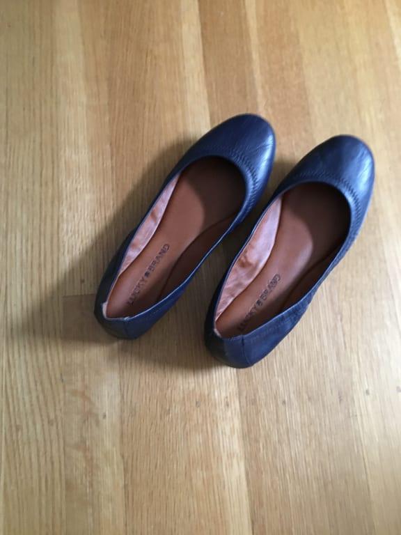 This is my second pair of these navy flats. My first pair all fell apart. The inside of the shoe was flaking off. Looked bad so I bought another pair. I also have them in black and neutral. Btw, all my jeans are Luck Brand.