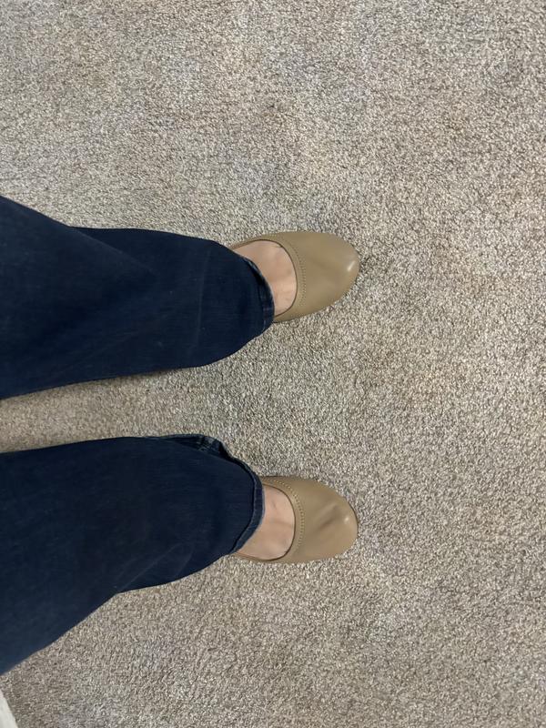 The leather Emmie Ballet Flat is stylish and can be worn with anything! The shoe fits to size. I wear 8.5 medium, and these fit perfectly! They and light weight, reasonably priced and are comfy! I walk with a cane, and these are the only shoes I can wear!