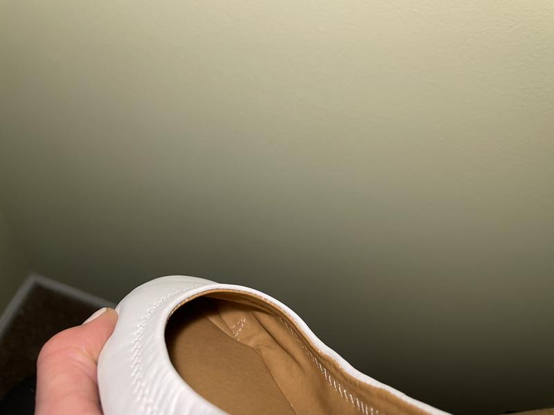 Crafted of buttery soft leather, the flats are styled with a rounded toe and elasticized, ruched topline that adjusts for perfect fit. The pretty flats are set on recessed island heels and finished with topstitching at the counter.