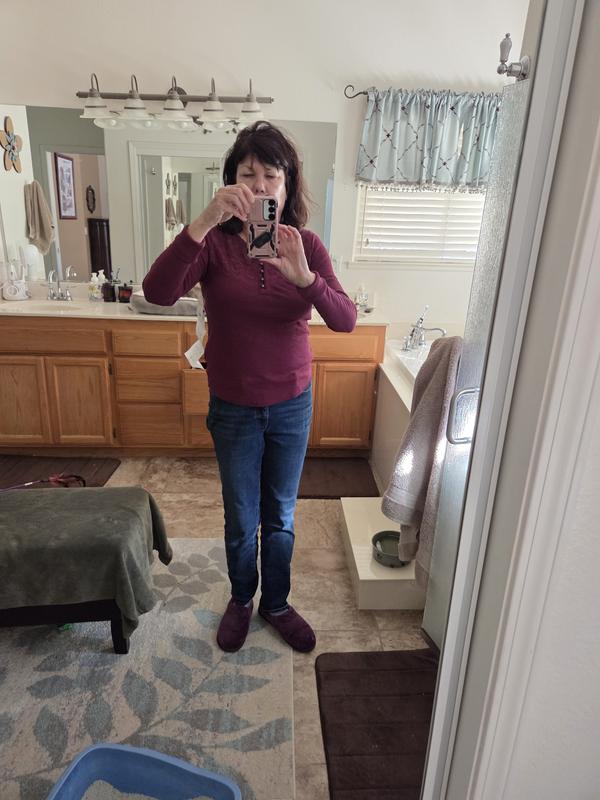 My daughter loved getting this shirt for Christmas. It is so comfortable and feminine. This color is especially nice.