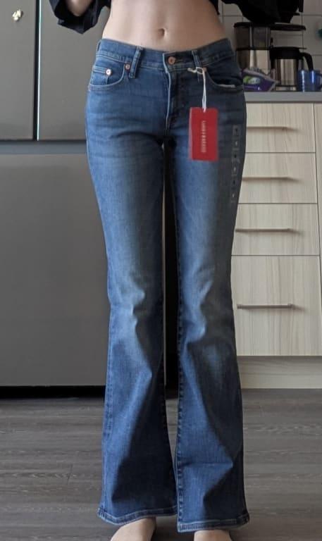 I've been searching for a pair of jeans that were fitted in the hips and thighs and "low rise" (by todays standards) with a flared bottom. I've tried so many and none of them were really flattering or what I was looking for. Lucky's are such a throwback brand and I was looking for kind of a throwback style so I thought to look here and I'm so glad I did. These are some of my favorite jeans I've had in a while. I couldn't decide between these and the bootcut so I bought both and really like both. These ones have a slightly stretchier fabric content as the bootcut but honestly feel the same for me. For reference I'm a 115 pounds and 5'6, but I'm all torso with short legs so I bought the 30 inseam size 25.