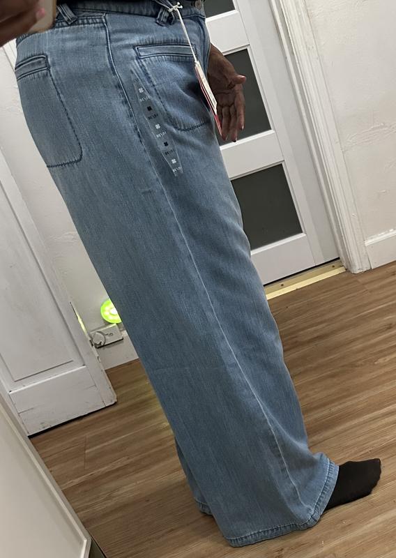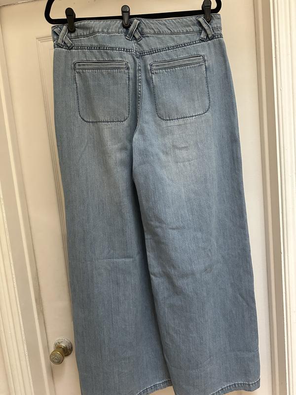 These are some really nice wide leg jeans they fit me perfectly. I wear a size 10 so I ordered a 30x29. I’m also 5’6” tall and they’re a nice length on. If you’re shorter than myself you will definitely need them hemmed or wear a nice platform or heeled shoe. I thought the pockets wear faux but turns out they are real pockets. Not sure if I will use them because they’re sort of small in front and I don’t want to remove the thread as it will keep the shape and flatness of the front pockets