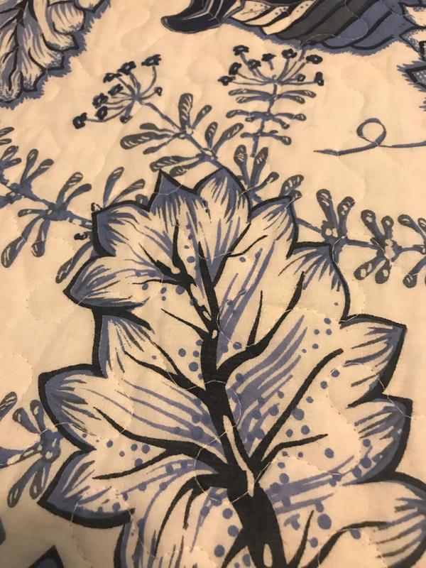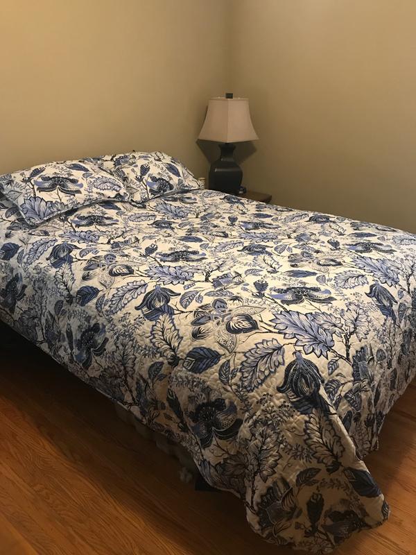 This quilt was nice but a little thin. Not a deal breaker but if you’re looking for thicker replicas of homemade/hand made quilts this may not be what you’re looking for on its own. You can always add a blanket underneath. Love the matching shams also.