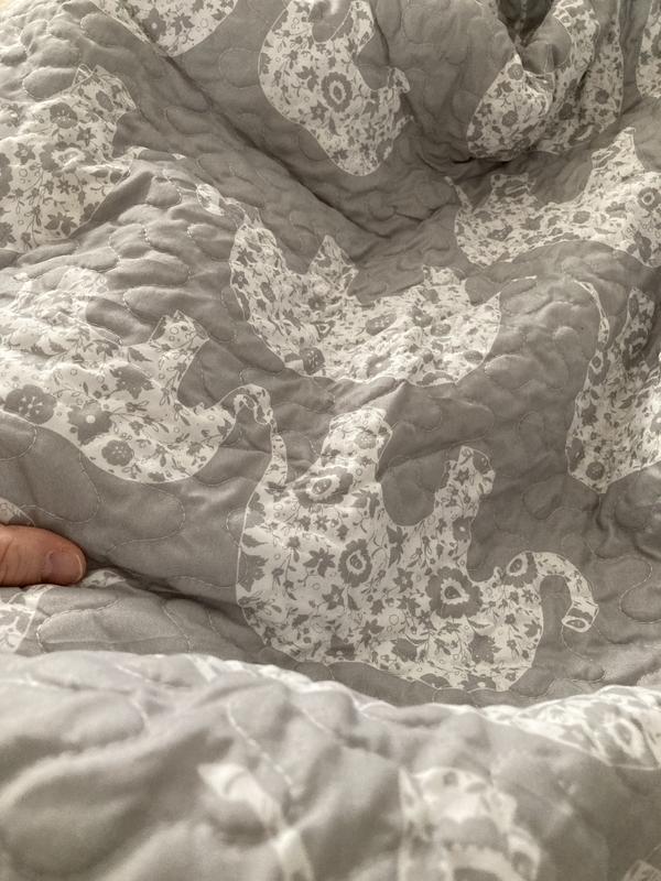 This very cute blanket is the best! Super cute gray & white little elephants with the super soft cozy fell of Sherpa on the back side. Our three kids have been sneaking it so the others don't know they have it. Very warm and snugly!