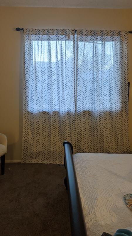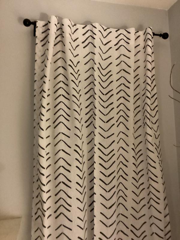 This beautiful curtains HYGGE MODERN ARROW LINEN in color white with black arrow lines from the brand Lush Decor are the perfect match for my bedroom, gives a modern and fresh look. I loved this curtains because permit that my room has privacy and at the same time permits that the sun light brights in, the size is 40 in x 84 in, are machine washable and comes in sets of two. The material has quality and I love the design because you don't see the curtain rod between your curtain. Simply beautiful