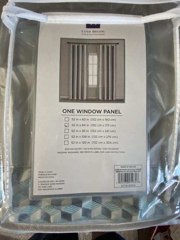 So I have been meaning to get curtains for a long time after realizing you can see in my bedroom windows at night. When I saw the Lush Decor - LUXURY MID CENTURY GEO FAUX SILK JACQUARD BORDER-WP-IVORY/GREEN-SINGLE-52X84 I thought I would give these a try and they are nice. They block out the window so no one can see inside my bedroom anymore, which is what I wanted. The fabric is a little thicker because it is not sheer, which means they don’t easily get dirty. The color is nice and the jacquard border adds a nice touch of elegance and a splash of color. You can design a whole room around these curtains because of the neutral colors and the unique colors within the jacquard pattern. So excited about these curtains they just give a whole new feel of intimacy and privacy to my bedroom. Also they are very versatile and would work great in any room of your home.