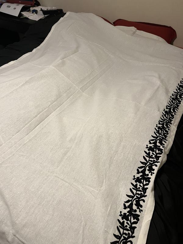 The Luxury Modern Flower Linen Like Embroidery Border- WP- Off White/Black Single is beautiful. I love the black embroidered flowers on the off white curtain. Goes with any room decor you may have. I love that it is lightweight, but is quality material that is thick.