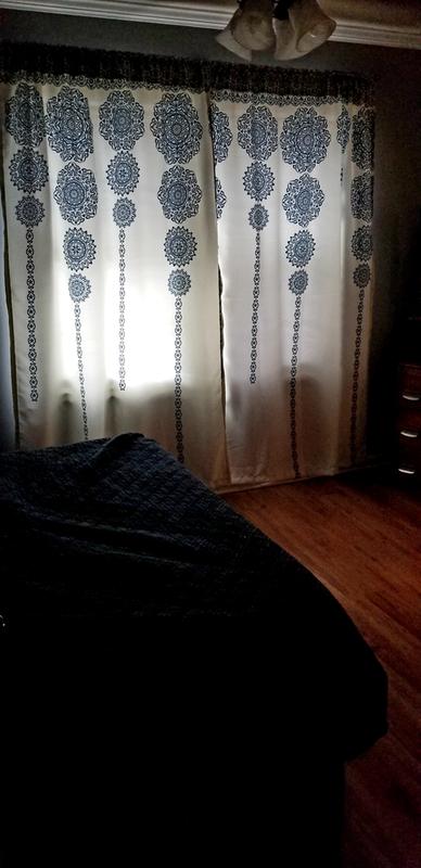 These medallion curtains are the perfect finishing touch to my living room. I just recovered an antique chair in a white and blue print and I needed another pop of color. I wanted something other than throw pillows. I decided on the blue and white medallion print and they are absolutely perfect. We have low ceilings so these look elegant reaching from floor to ceiling over our large window. The seams are all well sewn and nicely made. They even block the perfect amount of sunlight during the day if I want to take a nap. I have my eye on one of their pretty shower curtains for my bathroom, I might make that my next purchase!