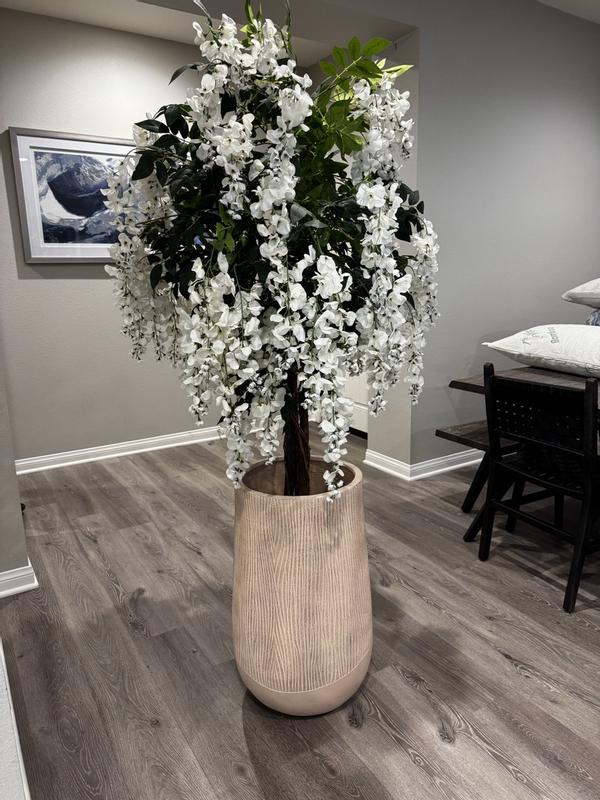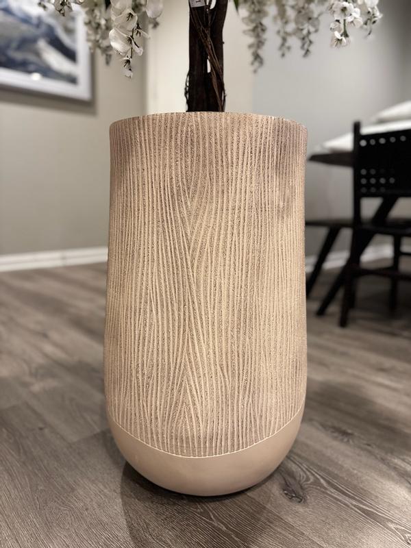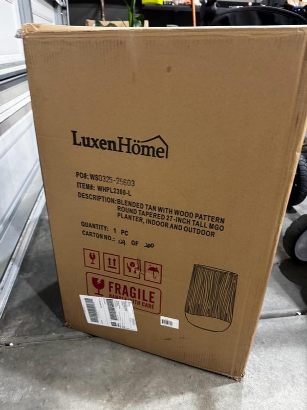 Blended Tan with Wood Pattern Round Tapered 27-Inch Tall MgO Planter, Indoor and Outdoor